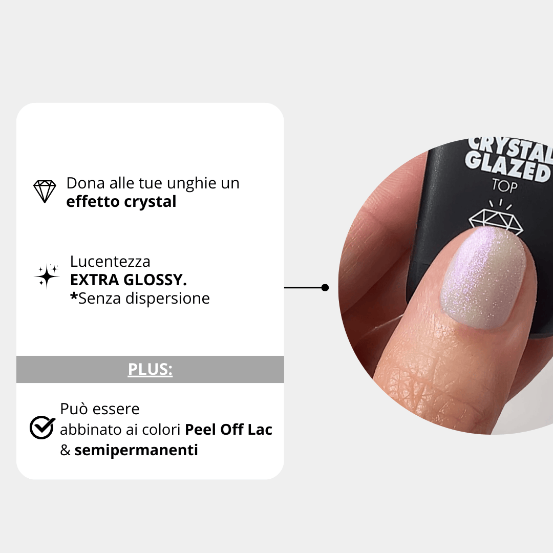 Top coat CRYSTAL GLAZED in limited edition designed to enhance the winter 2026 manicure. Its "glazed" finish gives your nails a diamond effect, capable of capturing and reflecting light with iridescent reflections.
