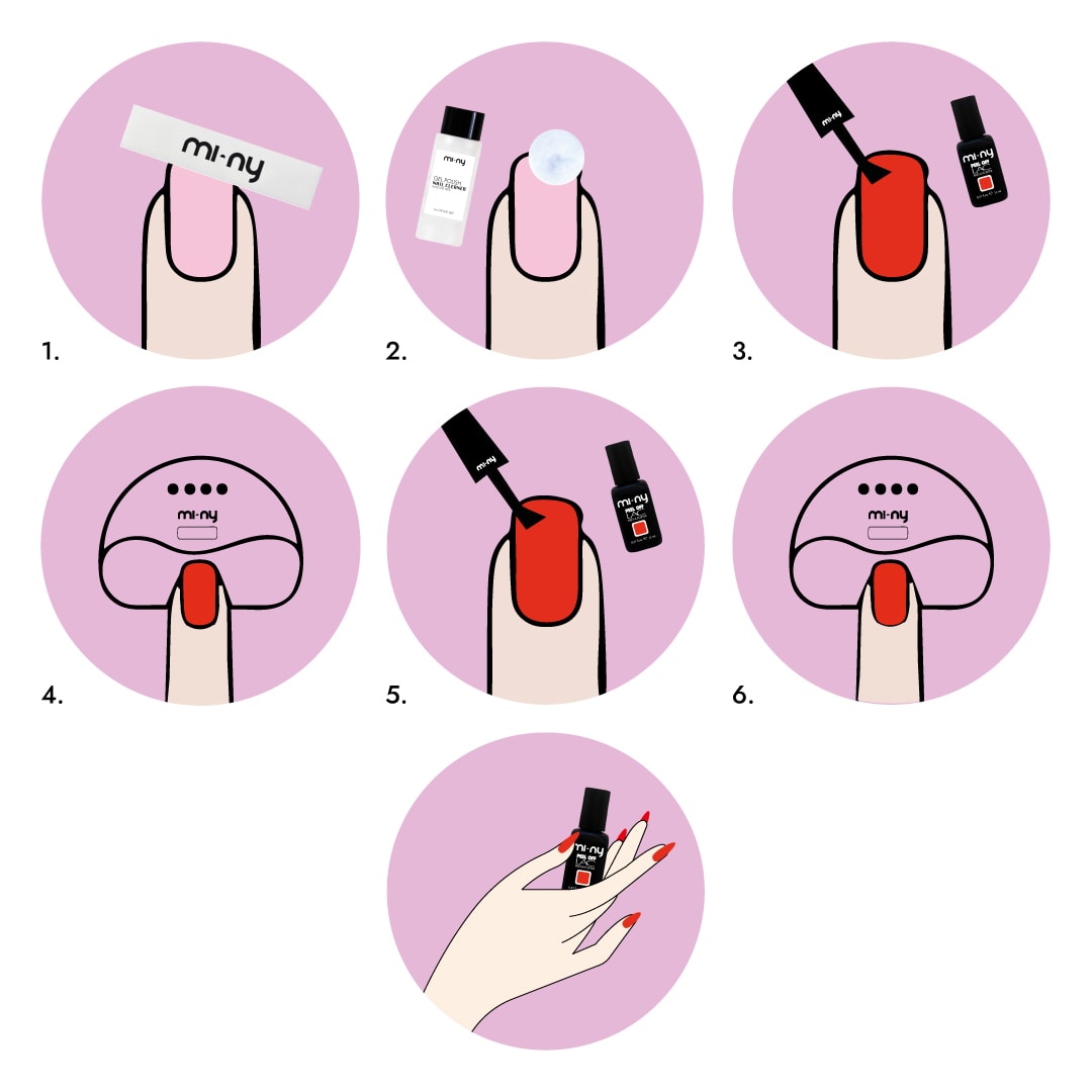 - In caso di unghie lisce, nelle quali la durata dello smalto risulti più bassa, si consiglia di sostituire l’utilizzo del nail cleaner con il primer, facendolo asciugare all’aria per 60”. La rimozione, in questo caso, dovrà essere eseguita con il remover seguendo la stessa procedura.