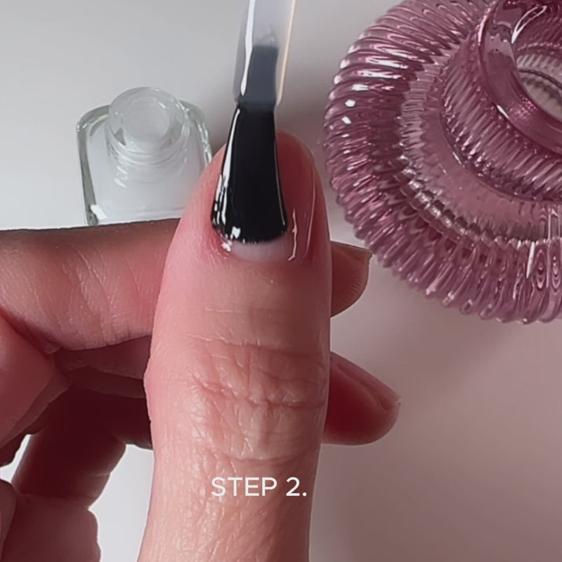 -MILKY GLOSSY - Applicare due passate su unghie naturali e lasciare asciugare ciascuna per due minuti. - Step: ULTRA INTENSE OIL - Massaggiare delicatamente sulle cuticole.